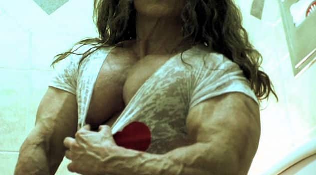 Watch Big and Thickly muscled Colette Guimond as she trains at Gold’s Gym Venice, California.